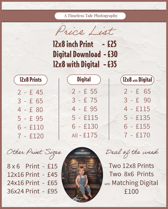 These prices are only available in-store and must be ordered at the time of sitting.